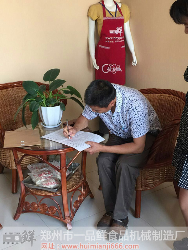 江西贛州一包子店李老板,2015年5月20來到我公司進(jìn)行考察,說自己經(jīng)營包子店十余年,利潤還行,只是太辛苦了,夫妻兩口沒日沒夜地干,孩子也無法照顧,所以兩口商量想考察點(diǎn)別的項(xiàng)目。他是在2002年的時(shí)候就關(guān)注到了一品鮮面食設(shè)備,由于其它原因,一直未能前來考察,現(xiàn)在趁著不太忙,抽出時(shí)間過來看看,他首先肯定的說雖然不知道我們一品鮮公司是什么時(shí)候成立的,但就從他關(guān)注到現(xiàn)在都十年幾年了,充分地證明一品鮮的實(shí)力。選擇一品鮮面食是因?yàn)檫@和他原來干的行業(yè)跨度不大,干起來比較容易,而且做面食只需要一間小店,位置不必像包子店一樣得處于繁華地段,這樣能節(jié)省出來一部分成本,另外是找?guī)讉(gè)工人,早上早起做各種面條,接著進(jìn)行批發(fā)零售,自己老婆招呼著店就行,自己還可以出去跑超市飯店,下午不營業(yè)就可以休息了,不像包子店一樣早起晚睡。經(jīng)過幾天的實(shí)地考察,李老板當(dāng)機(jī)立斷,決定投資一品鮮面食,當(dāng)場簽訂了合同,高高興興的回家準(zhǔn)備新的生意,在這里預(yù)祝李老板生意興隆,財(cái)源滾滾!