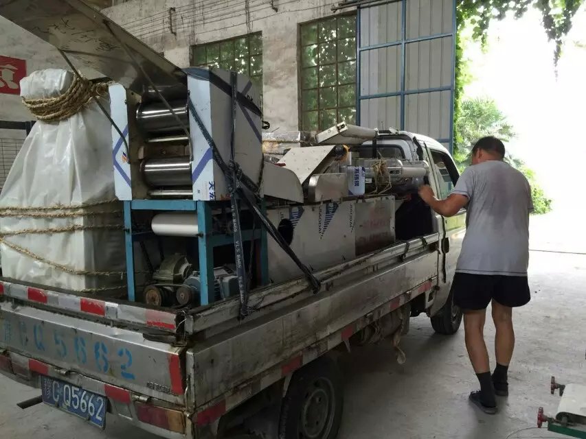 洛陽(yáng)客戶經(jīng)朋友介紹后,選購(gòu)和面機(jī),全自動(dòng)壓面機(jī),燴面機(jī)-2型,多功能成型機(jī)。這不,兩天后自己開(kāi)車(chē)過(guò)來(lái)卡設(shè)備回家,立馬開(kāi)工生產(chǎn)。