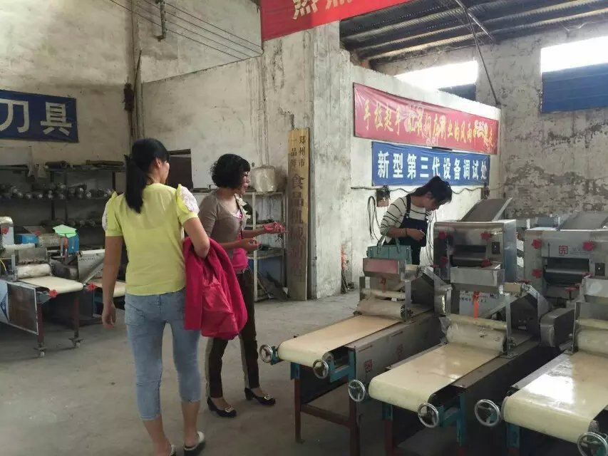 周口小伙和媳婦前來(lái)考察一品鮮燴面坯機(jī)生產(chǎn)設(shè)備