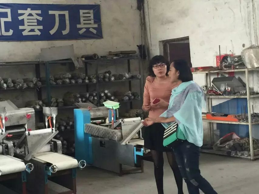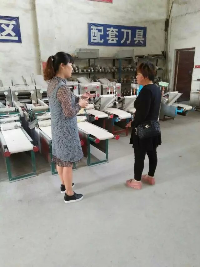 封丘張女士孩子都大了,外出打工,老公也在外地。自己一個(gè)人在家打工太辛苦,想自己投資做點(diǎn)小生意。在觀測到當(dāng)?shù)劓?zhèn)上沒有一家做燴面批發(fā)的,就和老公商量準(zhǔn)備做個(gè)生意。然后馬上讓孩子在網(wǎng)絡(luò)上查詢燴面機(jī)生產(chǎn)廠家, 然后聯(lián)系到了有13年生產(chǎn)經(jīng)驗(yàn)的鄭州一品鮮,這不,今天和老公一起來考察。因?yàn)閺埮繉γ媸骋灿兴私,在出面后,張女士拿起剛生產(chǎn)后的面,拉了一下,說到的確很勁道。醒之后,肯定會更好。 不過由于張女士家里還有事,下午就直接回了家。準(zhǔn)備忙完家里的事后,馬上過來購機(jī)學(xué)習(xí)。