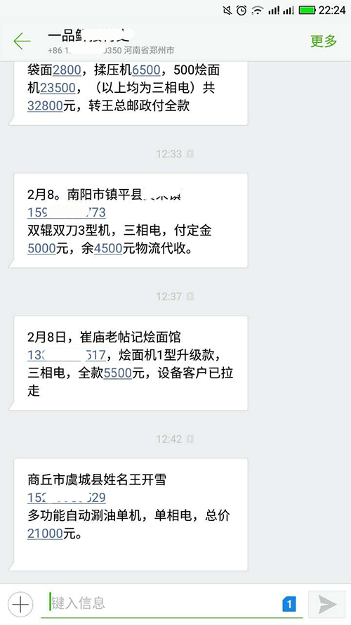 年后一品鮮迎來(lái)銷售旺季,節(jié)后一周內(nèi)已經(jīng)有10批客戶訂機(jī),前來(lái)考察的客戶更是絡(luò)繹不絕。而且很多客戶出于對(duì)一品鮮的信任,直接打款訂機(jī),前幾天有濟(jì)源的胡先生,今天又是商丘虞城的王女士(訂第四代多功能成型機(jī),可做拉條、拉面、扯面、多種面食,可自動(dòng)刷油),南陽(yáng)鎮(zhèn)平縣的宋先生(全套雙刀燴面機(jī)設(shè)備)。在此特別感謝大家的支持,正是一品鮮18載可靠的設(shè)備質(zhì)量,產(chǎn)品口感,一傳十,十傳百的口碑,讓一品鮮設(shè)備一年比一年出色,更加節(jié)省大家的人力、物力、財(cái)力。一品鮮愿一直陪伴在您的左右,有任何需求請(qǐng)撥打咨詢熱線:139 3903 5507(手機(jī)/微信)