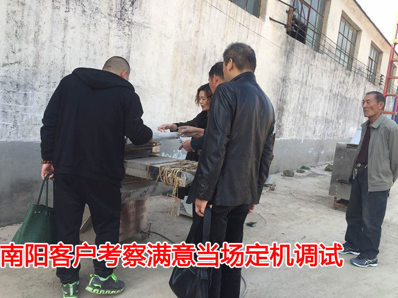 南陽鄧州客戶孫先生一行前來一品鮮總部考察批發(fā)燴面機設(shè)備,對設(shè)備非常滿意。嘗過現(xiàn)場下鍋的燴面后,對燴面口感贊不絕口。當(dāng)即就定購全套HMJ-3型燴面機設(shè)備,并在廠區(qū)現(xiàn)場進行調(diào)試設(shè)備。(注:廠房裝修中,調(diào)試設(shè)備在院內(nèi)進行)