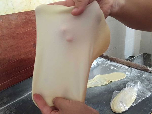 一品鮮燴面機生產(chǎn)出來的燴面坯,拉的薄的時候,就像紙一樣,能把面粉的面筋做出來。