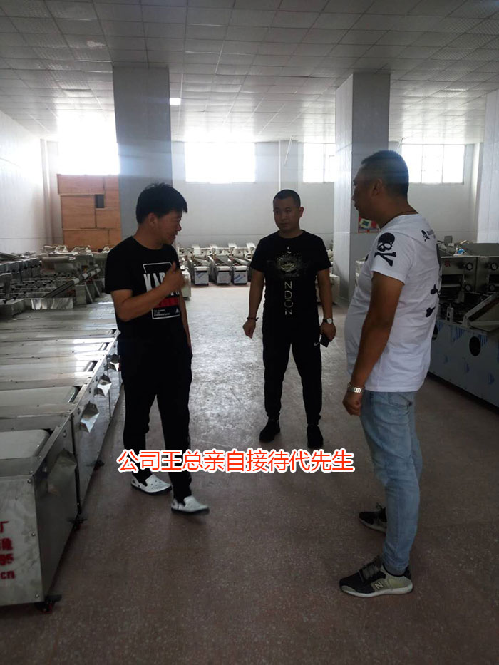 在直營(yíng)批發(fā)店和工廠,王總詳細(xì)為代先生介紹了新型9代多功能設(shè)備的研發(fā)由來(lái)、產(chǎn)品優(yōu)勢(shì)、生產(chǎn)品種、維護(hù)保養(yǎng)等,并現(xiàn)場(chǎng)進(jìn)行了生產(chǎn)實(shí)驗(yàn)。代先生經(jīng)過(guò)現(xiàn)場(chǎng)參觀、咨詢、品嘗,結(jié)合自己的實(shí)際情況。當(dāng)即定購(gòu)了一臺(tái)特殊定制款新款9代多功能成型機(jī)設(shè)備(可自動(dòng)刷油+自動(dòng)撒淀粉+機(jī)身加長(zhǎng)+特殊刀具尺寸等)和一臺(tái)500型加厚款全自動(dòng)揉壓機(jī)。